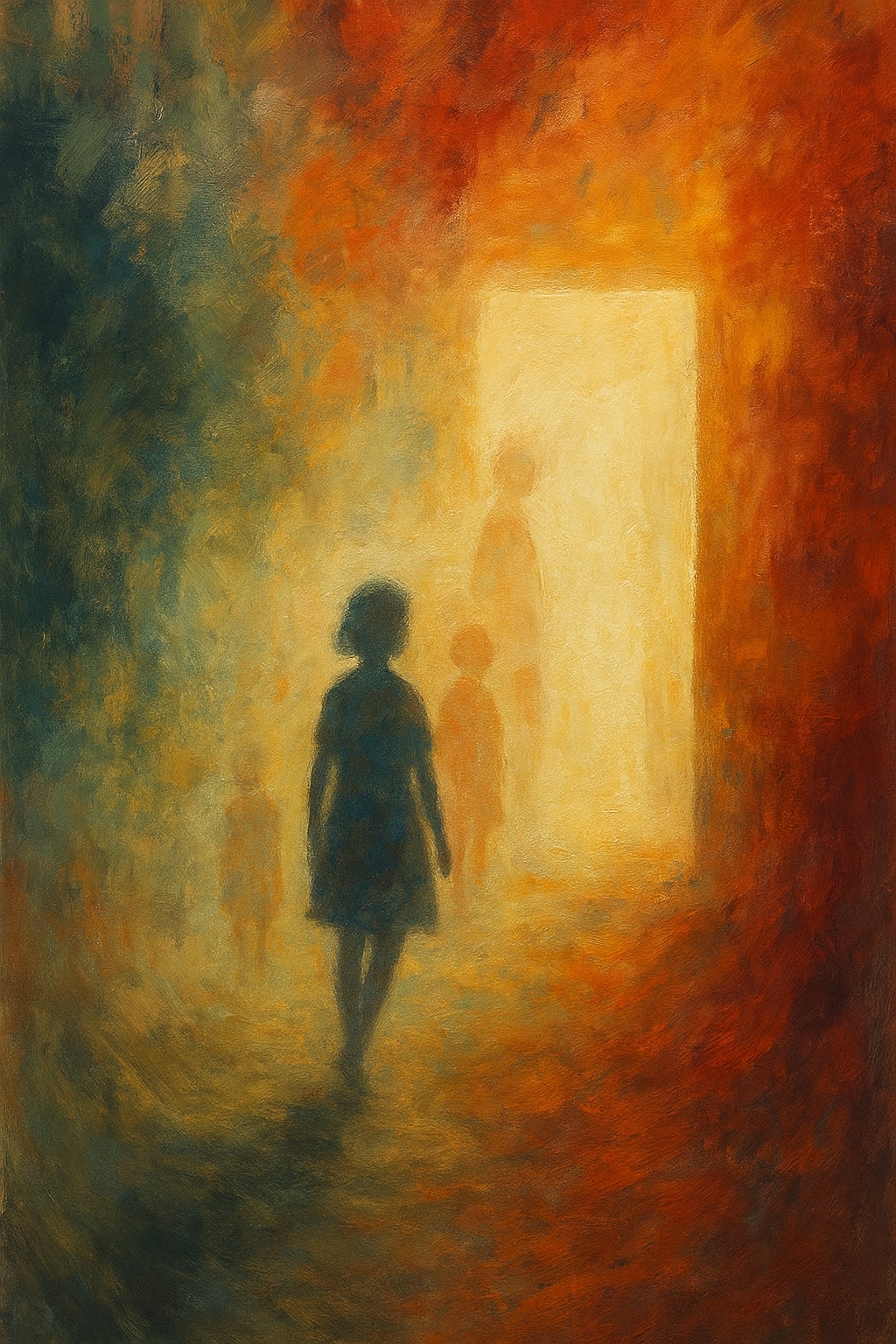 Then I hear them, small footsteps in the hallway outside. Quick, light steps that barely disturb the air. A child’s feet, moving with that particular mixture of curiosity and hesitation that comes before entering unknown spaces.